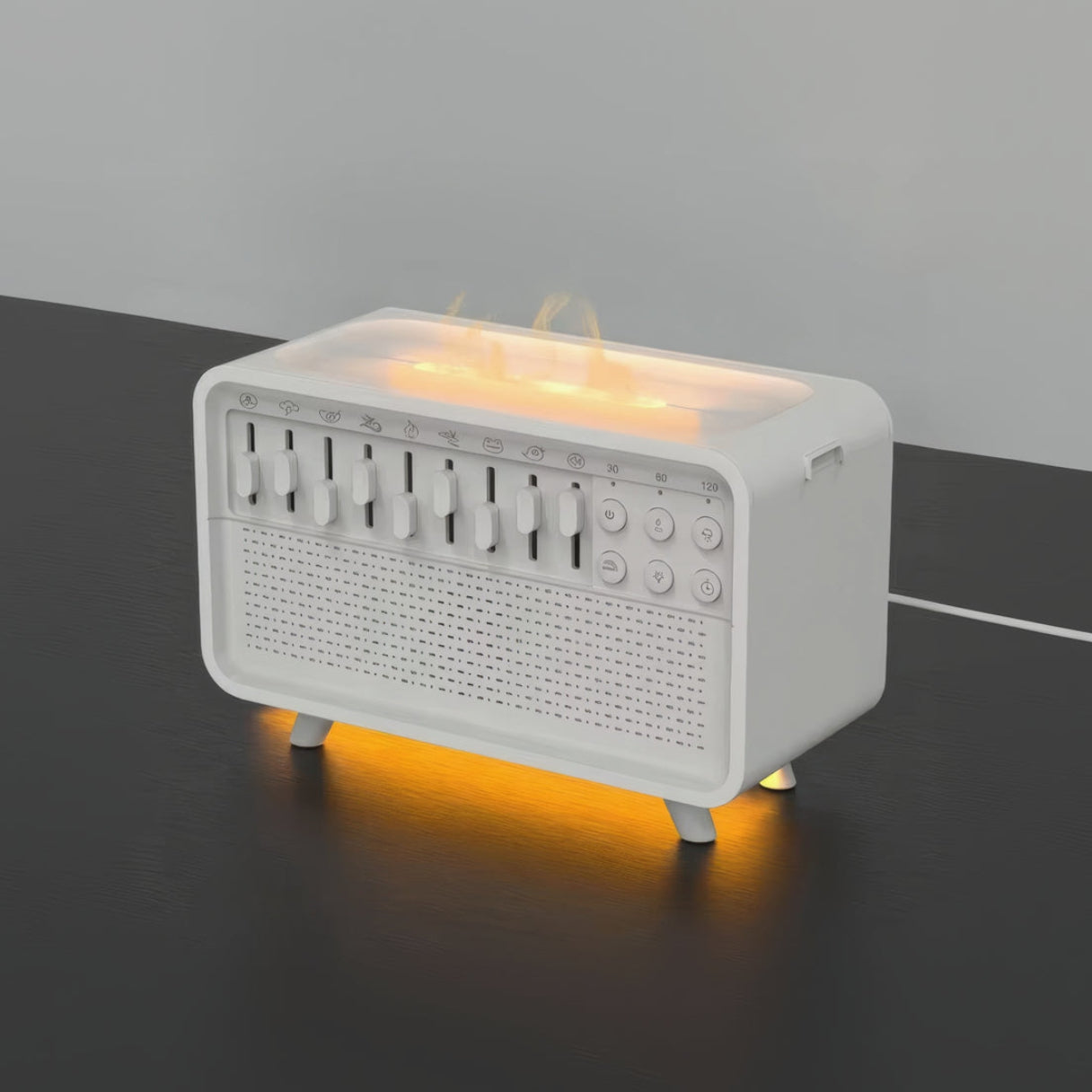 Transform your environment with this versatile 4-in-1 compact hub. It combines high-fidelity audio, a built-in humidifier, and a sleep aid system to create the perfect atmosphere for relaxation, work, or sleep.